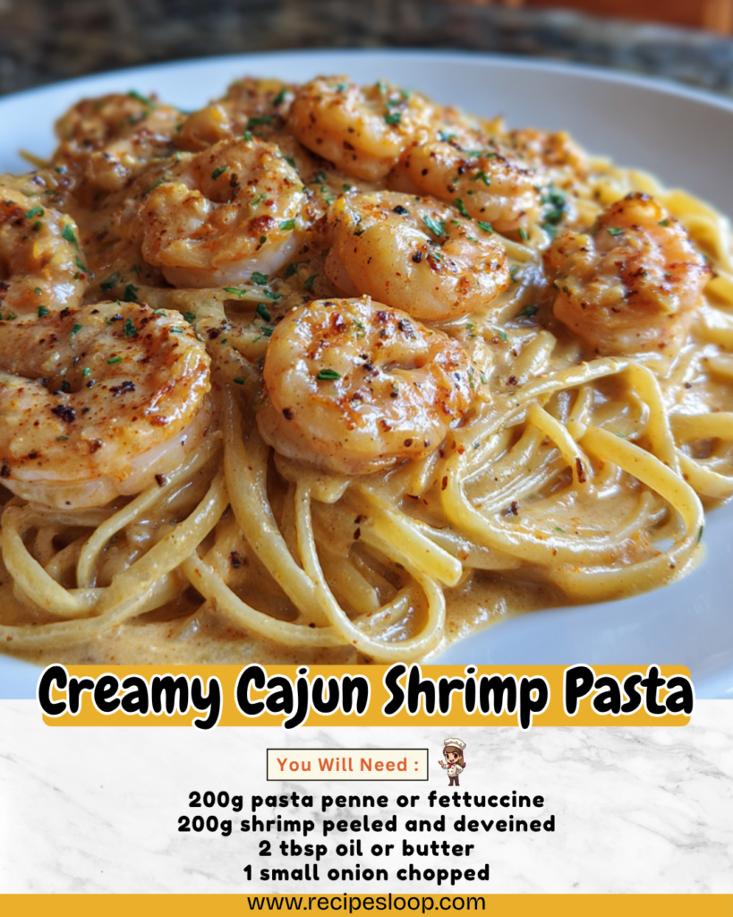 A luxurious pasta dish coated in a creamy Cajun spiced sauce with tender juicy shrimp and a glossy finish that clings to every strand. Bold, comforting, and full of flavor!